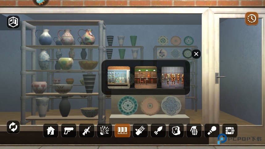 3、点击底部武器后再次点击房间位置就可以释放武器进行破坏