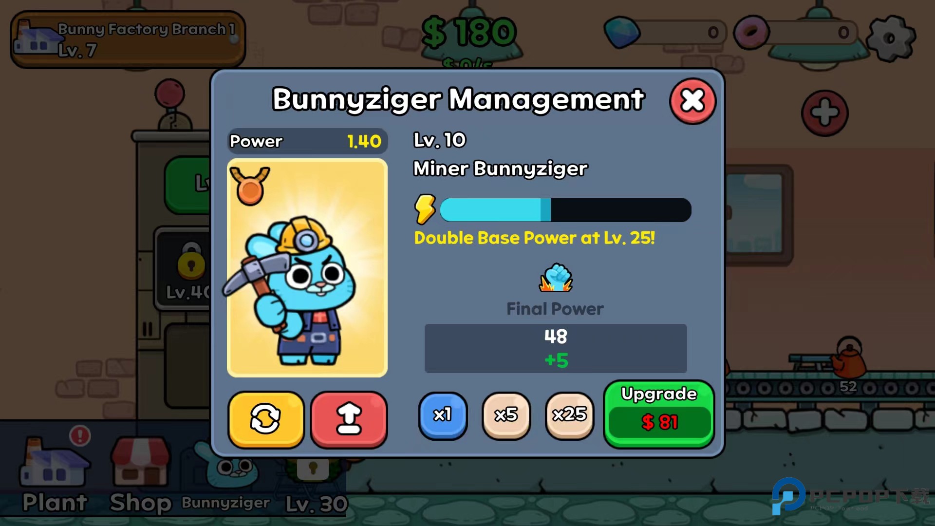 6、随着产品的不断生产,我们还可以通过升级来扩大工厂的规模,点击左下角的【Plant】选项