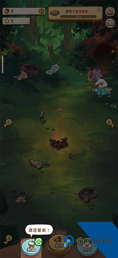 1、首先给咖啡馆建造一张餐桌,点击升级页面