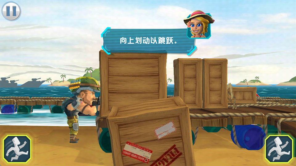 2、遇到障碍物可以点击跳跃。