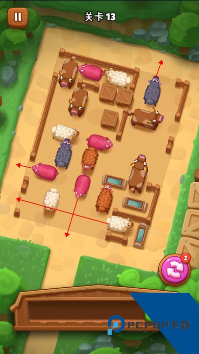 所有动物已在栅栏的缺口处集结,等待你的指挥。你需要规划合理的顺序,引导它们依次抵达安全区域。沿途需应对各类障碍,包括灌木丛、木桶以及栅栏等。请注意,动物体型大小不一,这将影响它们通过障碍的方式。此外,游戏中还加入了乡村浪漫元素——动物们可以两两结伴,互助脱困。合理安排,完成你的逃生方案!