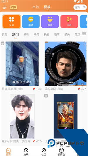 暴走P图是一款专门用于制作“暴走”图片的p图软件,软件的功能强大,支持各类p图操作,图片变形、加特效、扭曲等。在软件中还包含着大量全网热门的搞笑鬼畜素材,可以自行使用。不但如此,在软件中还提供模板的功能,顾名思义,用户可以将一些图片制作成可供二次创作的模板,下次制作同类型的,直接套模板就行,十分方便。