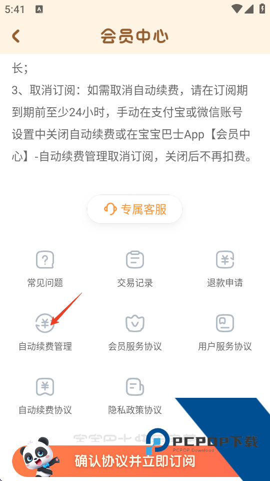 2、下滑至底部,点击【自动续费管理】,根据指示即可取消自动续费订阅