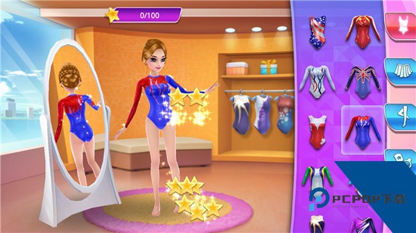 1、定制角色:自由自定义角色的发型、服装、配饰等外观形象,搭配特色装备与道具,打造风格独特、专属自己的体操明星。