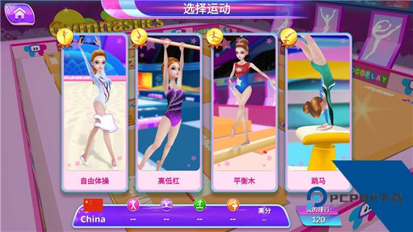 1、下载并安装本站提供的体操之星游戏,打开进入先选择你的体操运动员和代表国家,