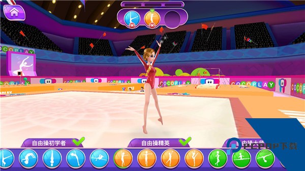 3、解锁新动作:随着技能等级与熟练度不断提升,能逐步解锁跳马、自由操、平衡木等更多专业体操动作,丰富表演编排与比赛内容,提升观赏性与得分能力。