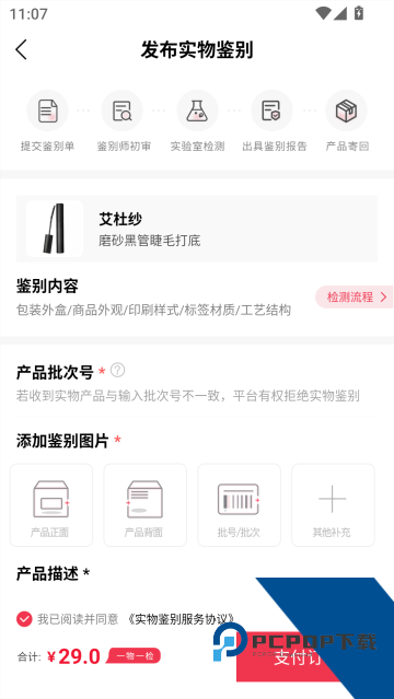 8、最后上传产品批次号、添加鉴别图片、描述产品信息、输入回寄地址,最后支付即可