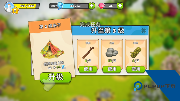 3、收集到一定量的物资后,可升级角色的房屋,开放更多有趣的游戏内容。