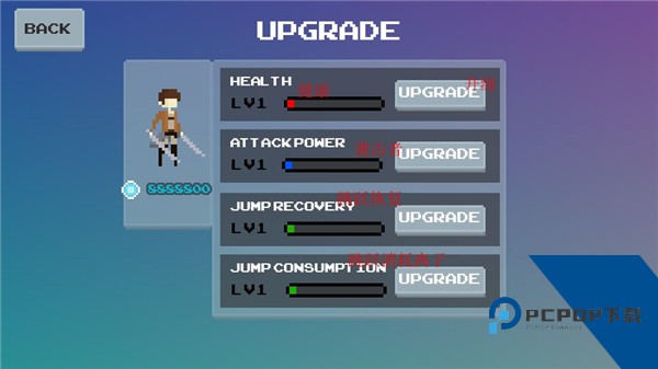 3、可以升级自己角色的健康,能量等基本条件,升级会后攻击力会更强;