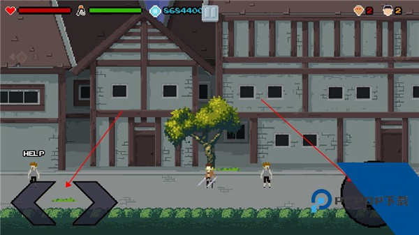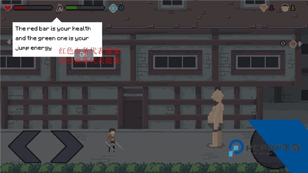 8、左边的按钮可以控制角色左右移动,右边的按钮可以控制角色进行攻击;