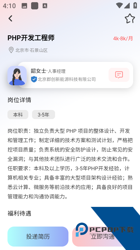 易直聘app是一款专业的全国高薪求职招聘软件,用户可以根据自己的求职需求和基本情况,在线编辑自己的简历信息,也可以在线投递自己的简历,获取更多的就业机会,还可以在求职过程中与招聘者在线沟通,轻松获取详细的职位信息,非常方便。