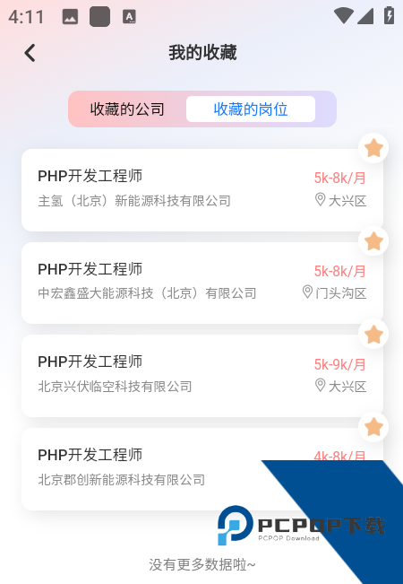 3、我们可以在【我的】-【收藏】中查看所有收藏的岗位信息