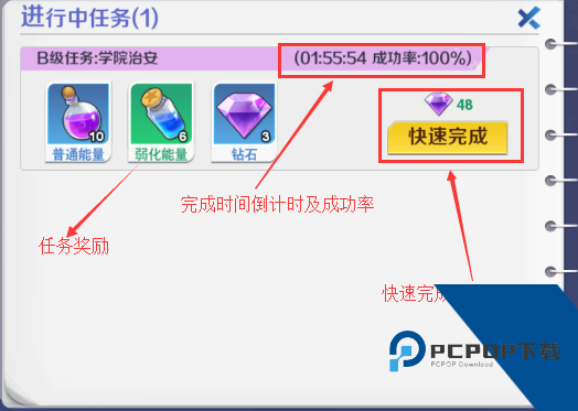 B级任务:3钻石、弱化能量若干、普通能量若干。