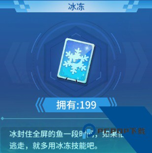 3、冰冻:顾名思义,冰冻的作用就是把渔场中现有的鱼冰冻一段时间,防止在还没有击落鱼时,鱼就跑了。使用冰冻道具,不会影响渔场后面进入的鱼,只会冻住渔场中现有的鱼类。所以也不用担心冻住的鱼打完了还没有鱼类进来的情况哦。