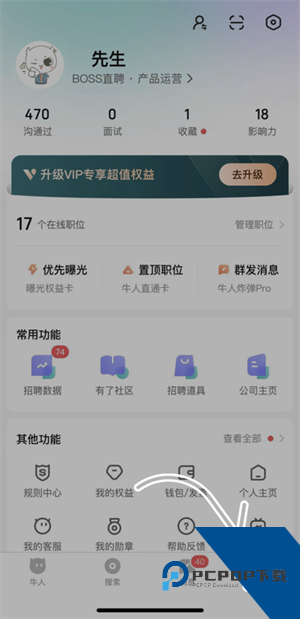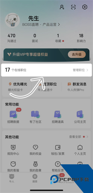 2、点击“管理职位”位置。
