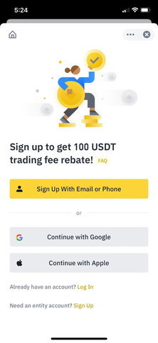 1.打开币安App,点击【注册/登录】。