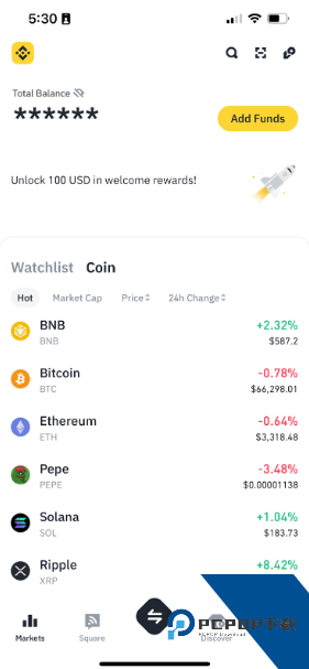 1, 登录币安 App,点击首页上的【充值】。