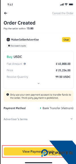 6. 订单创建后,点击【查看支付详情】查看卖家提供的收款信息。