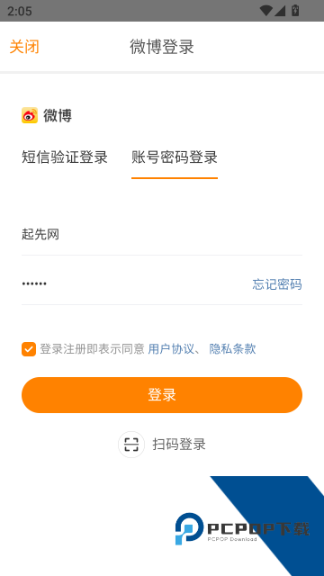 2.依次输入你的微博账号与密码,同意协议后点击登录即可