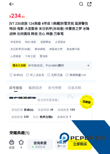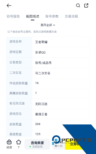 3、进入账号详情页后,可以查看账号的具体信息,点击“立即购买”完成购买