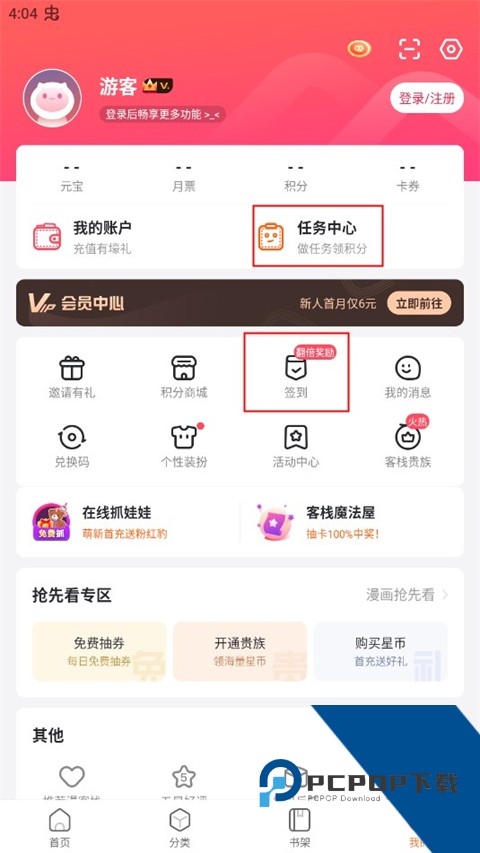 2、此外还可以在我的界面里找到任务中心和签到领取积分,这些积分都是可以兑换会员奖励的。
