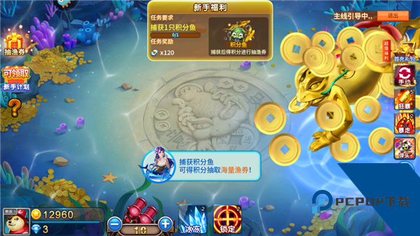 6、当然在这里捕获积分鱼,这个鱼可以得到积分抽取海量渔券。
