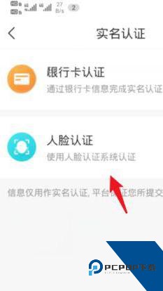 5.进入实名认证页面后,可以选择银行卡验证或人脸识别方式完成认证