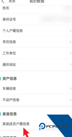 3.找到【家庭成员户籍信息】并点击进入