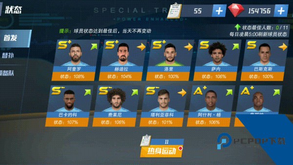 11、16级球员状态功能开启,最高可以将球员状态刷到110%,额外加成多10%的属性,前期好像作用不大,后期感觉才会有用。