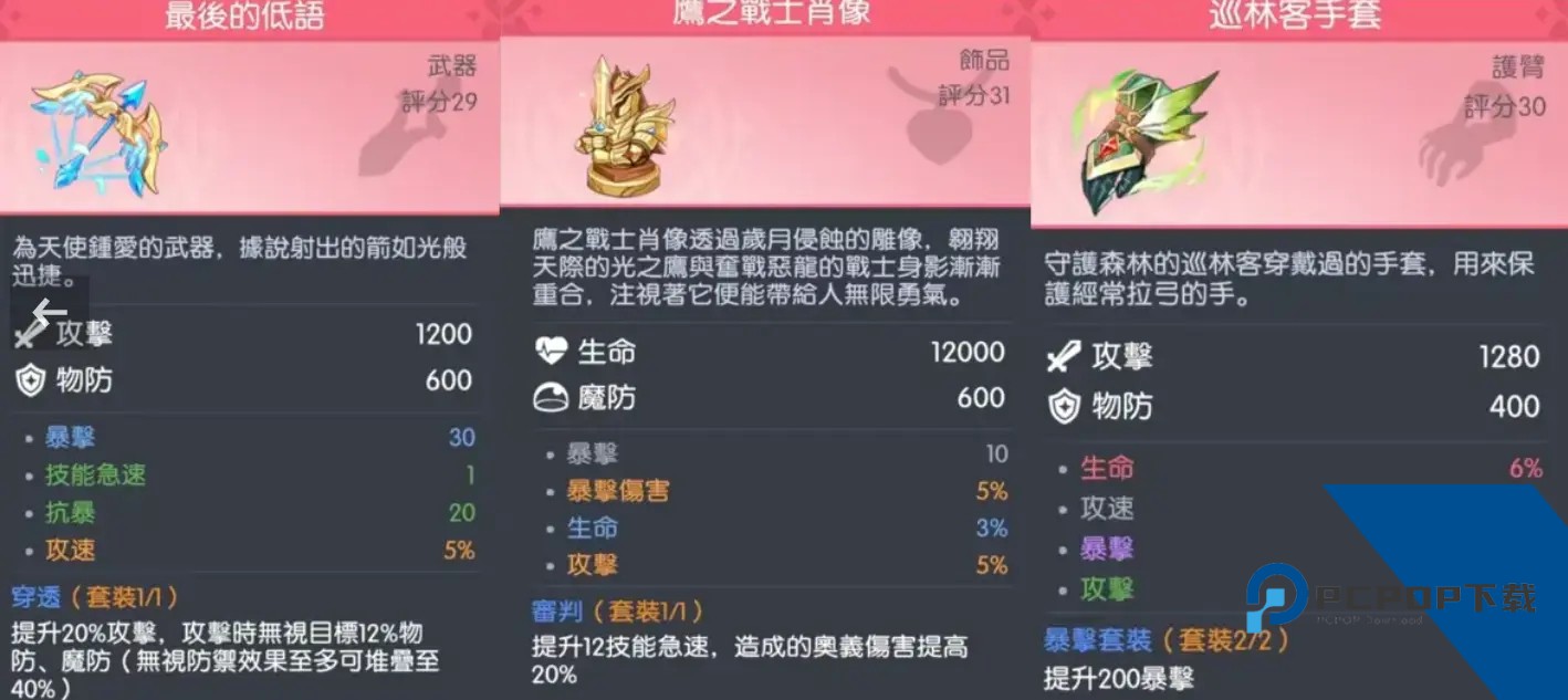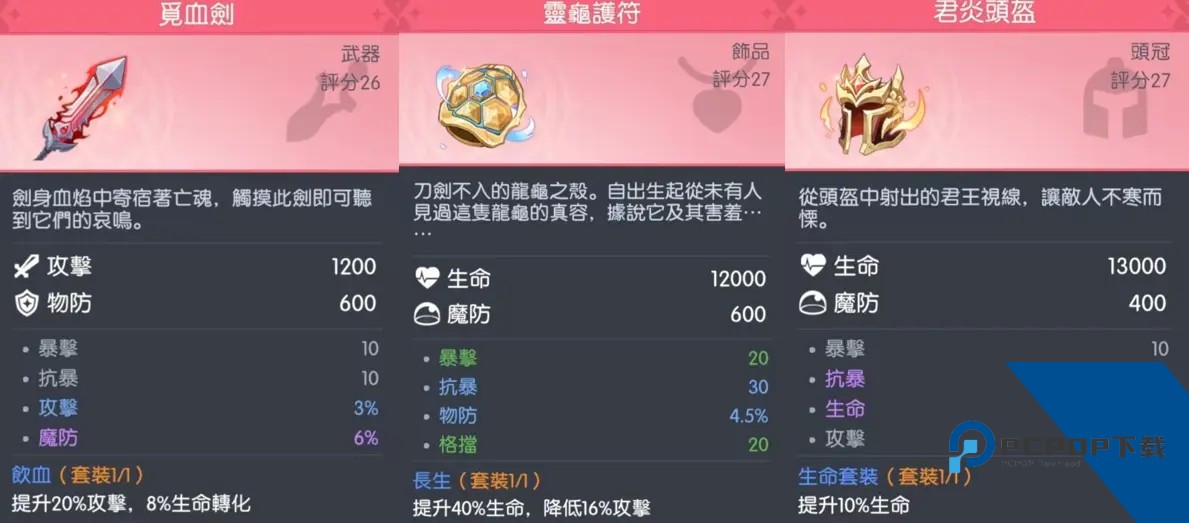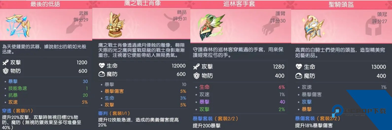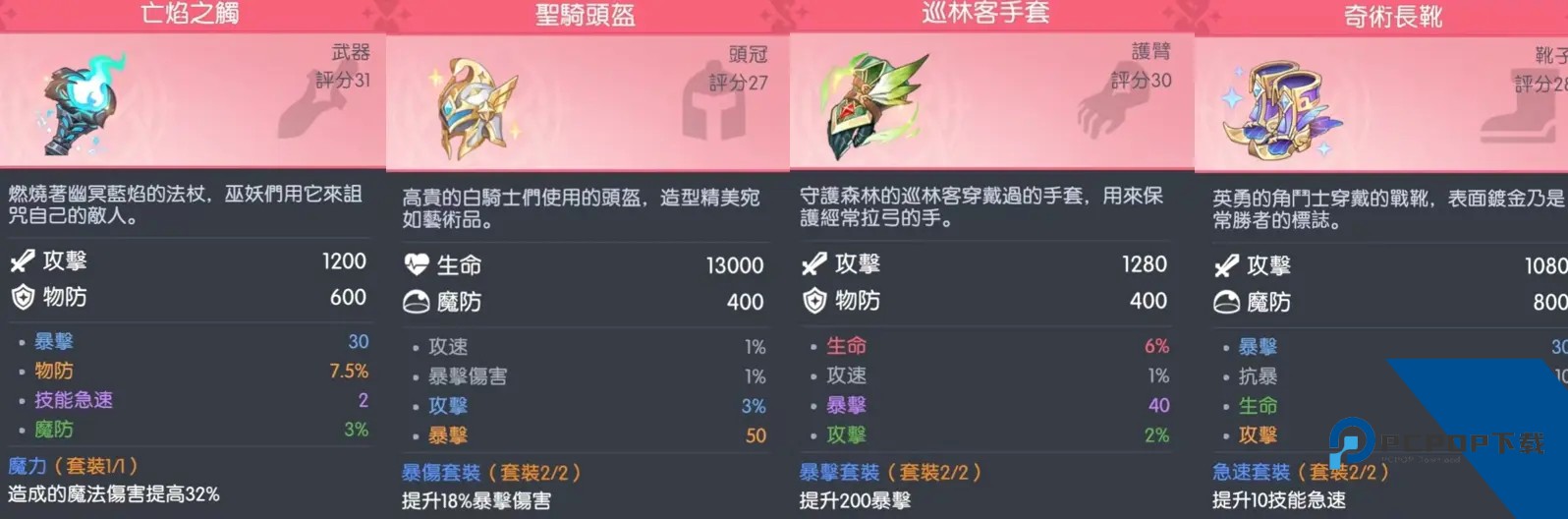 总结:装备带好了可以有很大提升,并且根据不同阵容也可以有不同的装备选择。由于后期暴击率(多人多次实测1000满暴100%,但是否暴击还需要考虑敌方抗爆值)容易提高,所以很多角色都是可以选择不带暴击套的,如果你暴击率不高可以去带暴击套。
