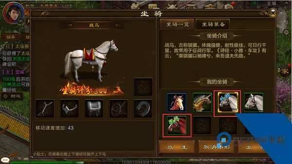 1、主线任务赠送枣红马后,开启坐骑功能。