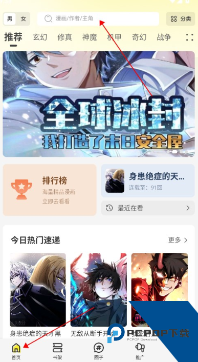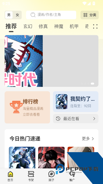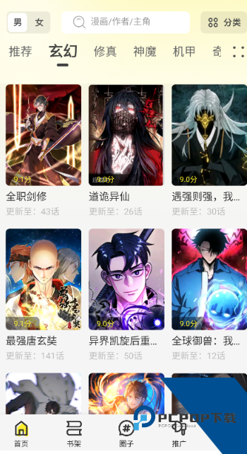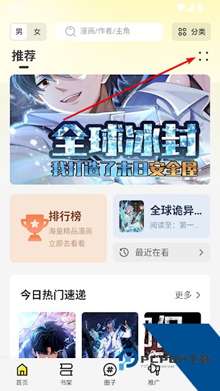 2、进入首页后,顶部导航栏会展示多种漫画分类,方便快速浏览