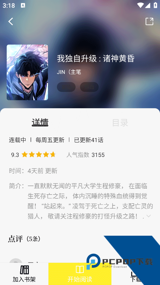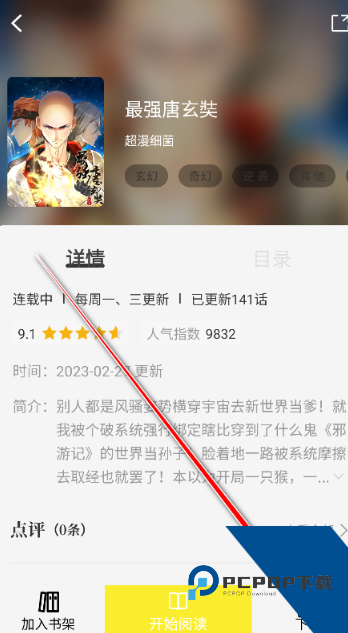 4、点击目标漫画后,可加入书架、直接阅读或下载到本地