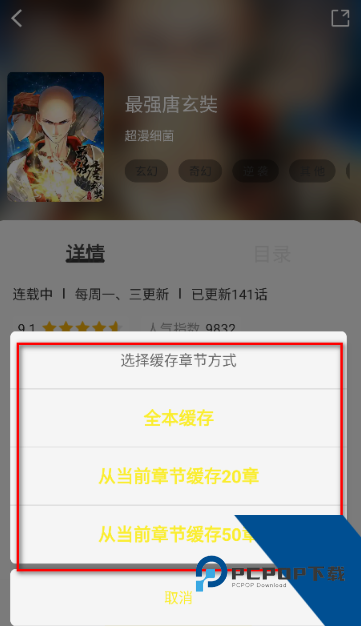 3、根据自己的阅读习惯选择章节缓存方式,就能离线看漫画了