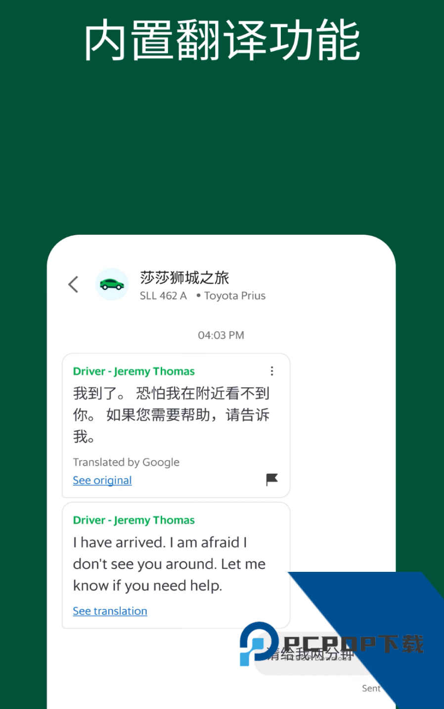2)可以电话联系司机,也可以通过聊天界面联系(文字会自动翻译);