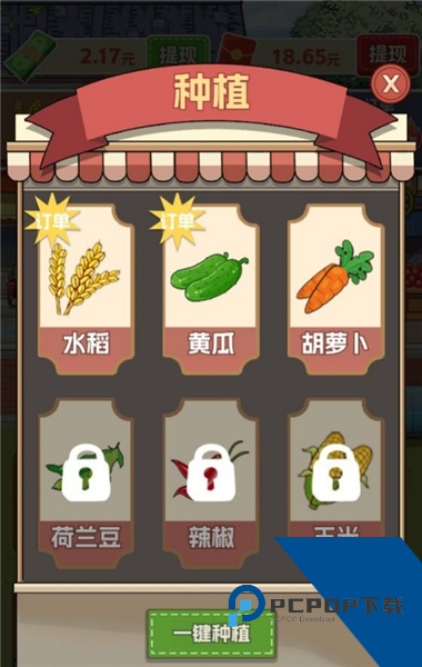 种植操作:点击选中一块空地,再从种子背包中选择想要种植的种子,即可完成种植。种植后,作物会按照其生长周期逐渐生长。