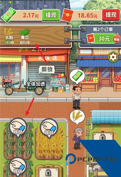 4、成熟后的作物,点击收获就会自动提交到对应订单。