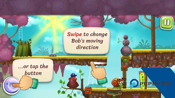 2、鲍勃会自动向前移动,滑动以更改鲍勃的移动方向,或者点击左下角按钮。