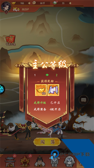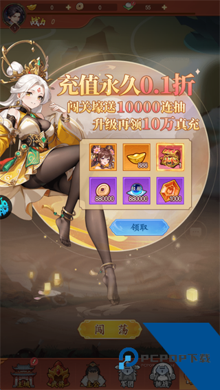 1、开局领取S+武将小乔,并且签到可以获取升星材料,前期通关升级必养角色。