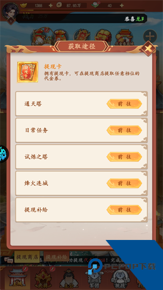 4、挑战副本掉落提现卡,可以在提现商店兑换代金券,代金券可以用于充值游戏内任意礼包。