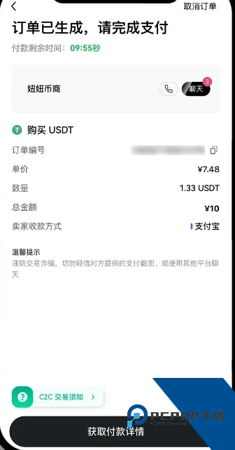 如果信息无误,请点击【订单详情】。请及时打开手机银行 App / 支付宝 / 微信,输入对方账户信息进行付款。请务必在完成付款之后,再点击【我已支付】。对方核实款项后,您所购买的数字资产就会发放给您。