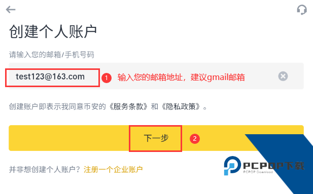 阅读并同意《服务条款》与《隐私政策》,然后点击【创建个人账户】。
