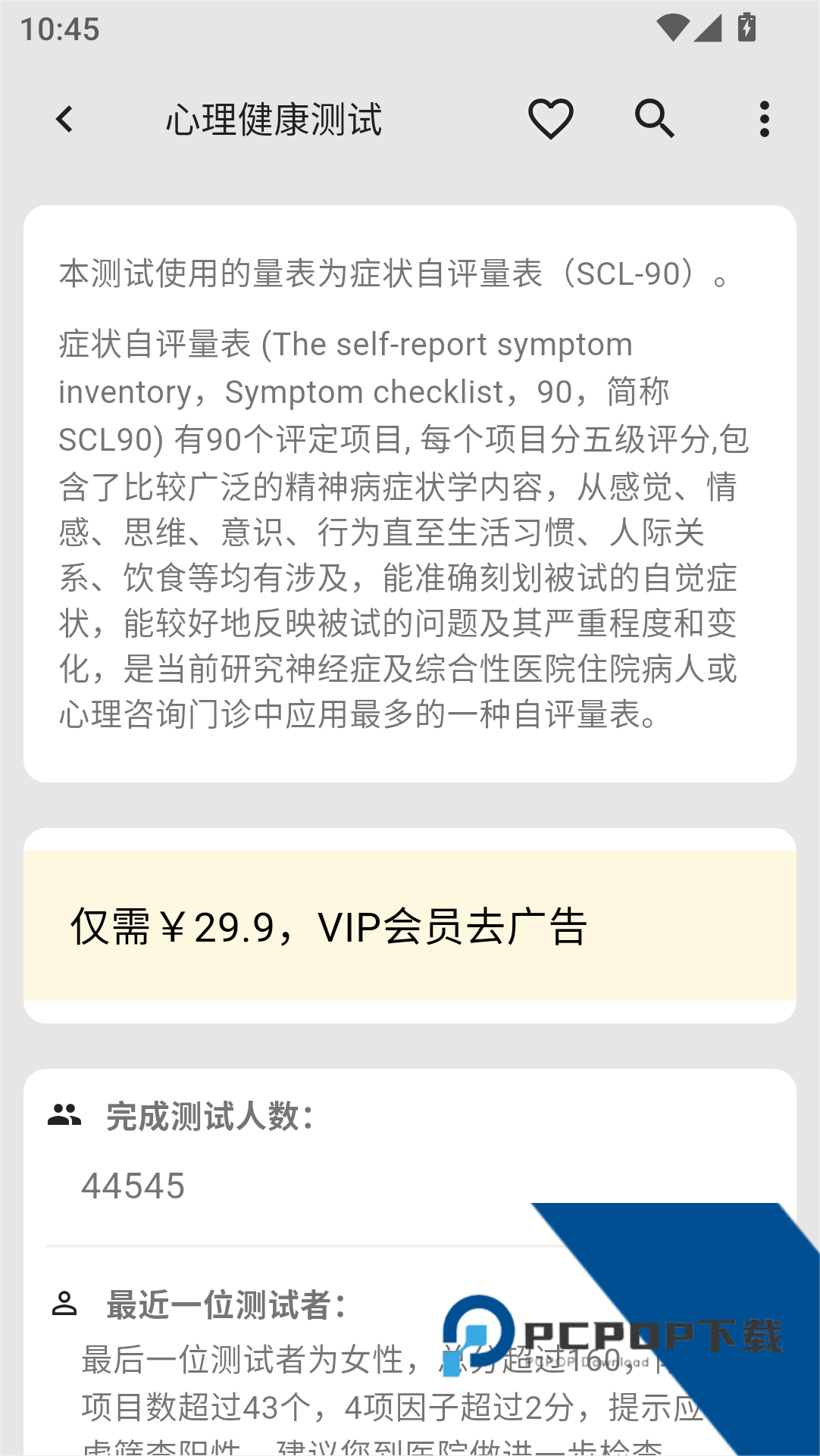 医学百科app除了可以查询各种医学知识以外,还具备心理健康测试、心里年龄测试、亚健康状态测试、职业兴趣测试等功能,可以帮助用户全方位了解自己的身体与心理健康程度。