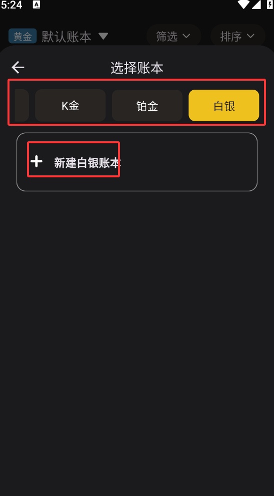3.在滑动栏中找到白银,然后点击新建白银账本