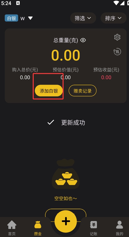 回到首页,点击添加白银,这样白银账单就添加完成了