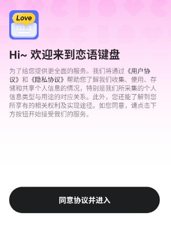 1.打开恋语键盘App后,先点一下“同意协议并进入”,这样就能顺利进入主界面。
