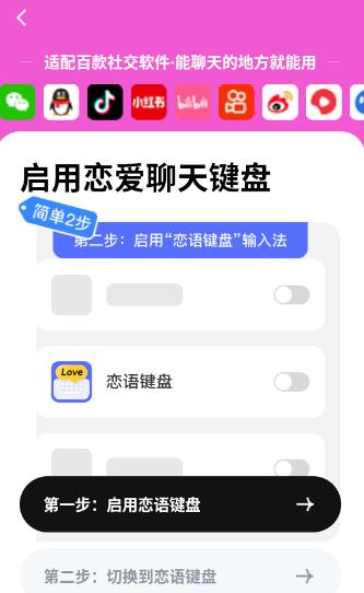3.随后点击“启用恋语键盘”,按提示完成输入法启用流程。