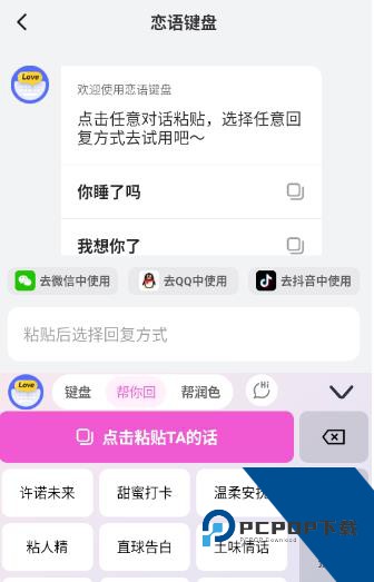 1.作为一款专注恋爱沟通的手机键盘,它可以随时在不同输入法之间切换,聊天时更灵活。