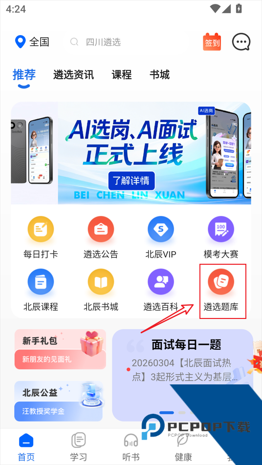 北辰遴选app上还拥有海量的遴选题库,用户做完以后会有名师帮忙批改和在线解析问题,能有效提高用户的学习效率。另外,平台也会及时更新遴选资讯和岗位信息,让用户在第一时间了解到遴选,帮助他们更好的做规划。