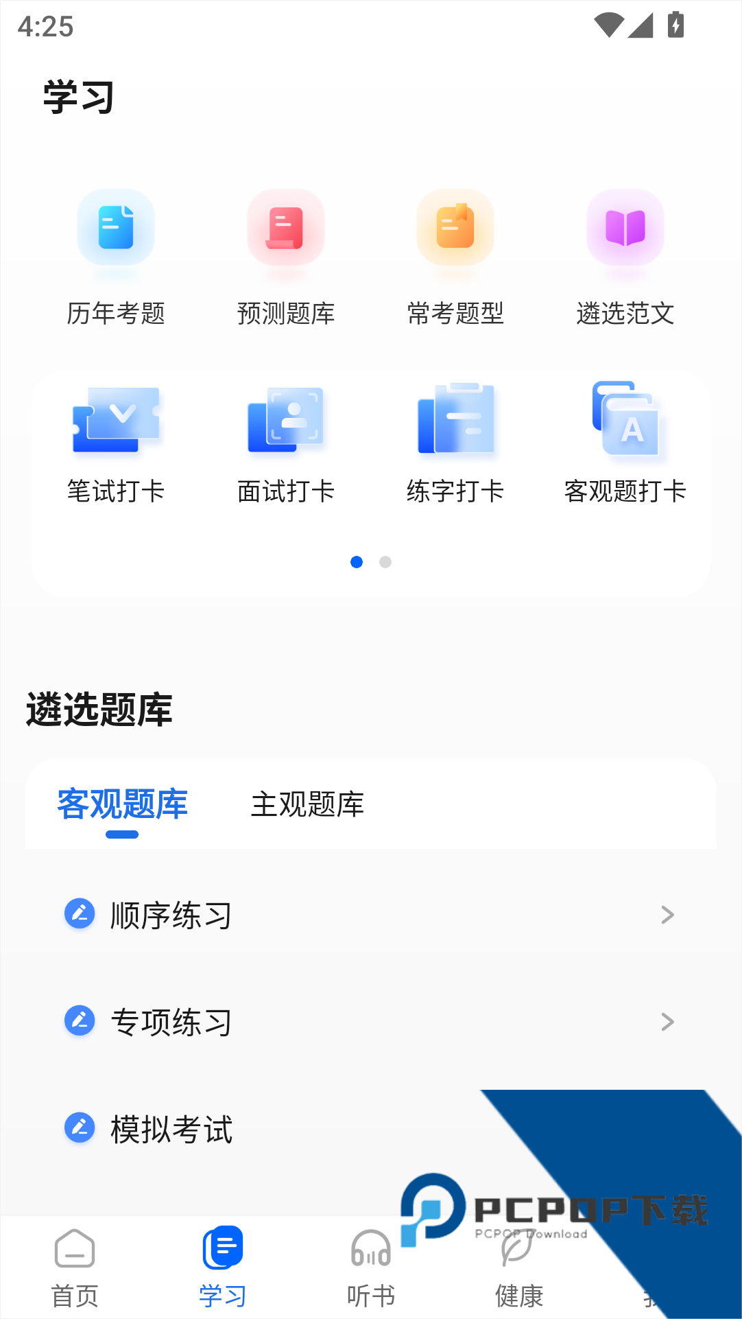 2、然后选择是刷客观题还是主观题,按需选择即可